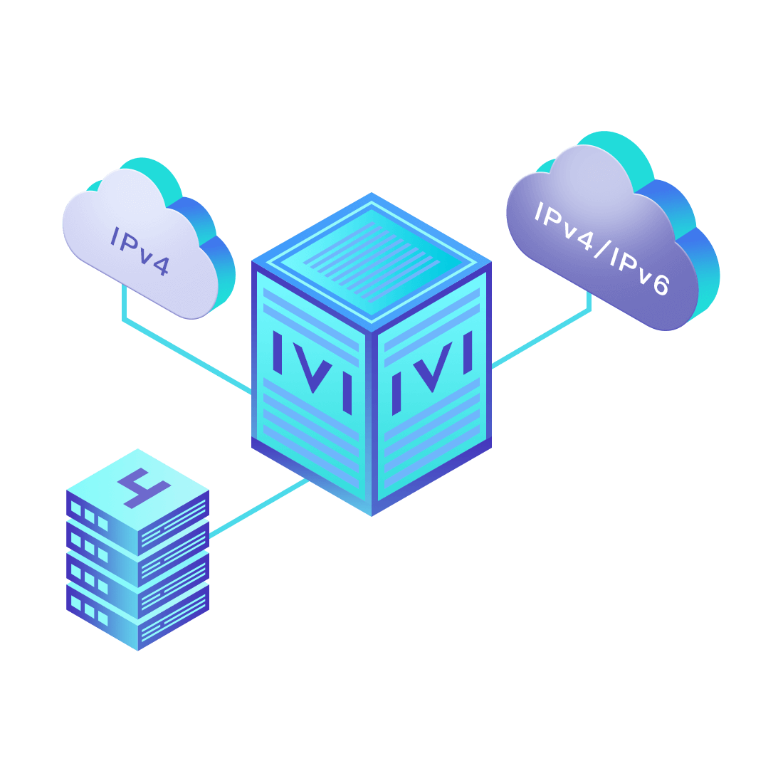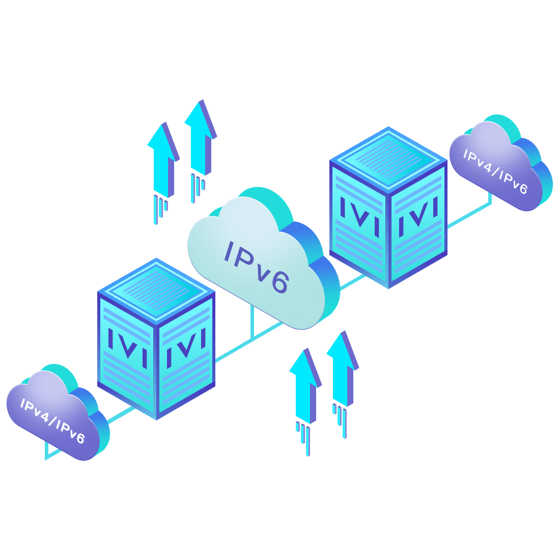 對正在進行IPv6整體升級規(guī)劃的運營商,應用IPv6升級方案2.5,通過IVI無狀態(tài)翻譯技術(shù)和純IPv6接入網(wǎng)絡(luò),為雙棧客戶端和雙棧服務器提供連通服務。